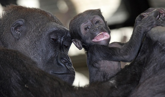Не так давно в лондонском зоопарке родилась вот такая очаровательная горилла winked В свои 4 месяца она еще только учится ходить с помощью любимой мамочки!