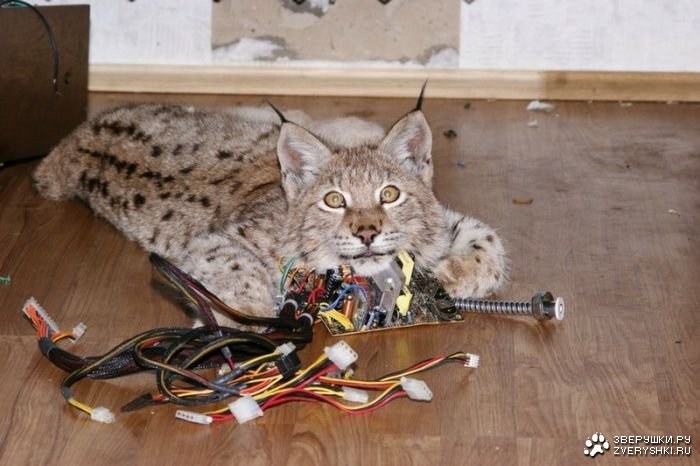 Одна семья приручила много диких животных, которые стали домашними. Живут они в одном доме и на удивление, дружат между собой. А животные эти: рысь, лиса, хорьки и даже медведь. Удивительно winked